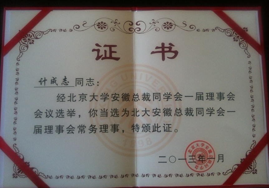 安徽環(huán)瑞總經(jīng)理計成志先生予2012年順利取得北京大學EMBA高級管理碩士學位,在2013年4月參加了一屆一次的安徽總裁同學會常務理事會。