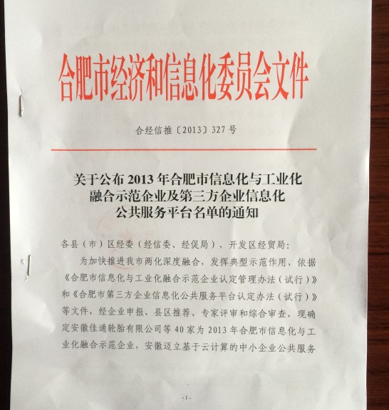 以下為合肥市經(jīng)濟和信息化委員會頒發(fā)證書及紅頭文件: