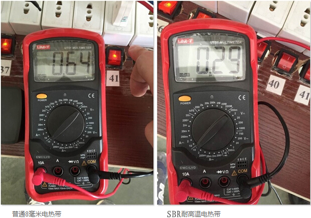 SBR型耐高溫電伴熱在模擬沸水管道狀態下使用后,啟動電流基本無變化,產品性能更加穩定,有效地降低了伴熱帶起火燃燒的概率,提高了使用壽命,發熱溫度更高,更適合太陽能管道伴熱。