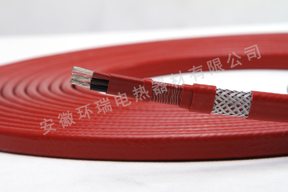 電伴熱帶主要分為自限溫和恒功率兩種。恒功率產品中有一種三相恒功率電伴熱帶,包括有三個電纜內芯,其特征在于:每個電纜內芯分別由一根金屬導線組成,每根金屬導線外分別包覆有一根金屬導線組成,每根金屬導線外分別包覆有芯線絕緣層氟塑料;兩個電纜絕緣層外依次包覆有發熱絲、骨架層、絕緣護套氟塑料、金屬屏蔽網和加強防腐外套氟塑料。這種實用新型電伴熱帶溫度均勻,保溫效果好,安全可靠。這種新型三相恒功率電伴熱帶保證了電伴熱帶溫度的均勻和高效的熱轉化率,它可適用于長距離,大口徑管道的伴熱和保溫。
