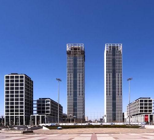 大連國際金融中心諾德大廈位于大連市沙河口區(qū)會展路和體壇路之間,東側是大連期貨廣場A座工程,南側是百年匯開發(fā)的大連國際金融中心配套工程,其中軸線是大連星海廣場的中軸線。A、B座對稱布局,面向原來的會展中心。雙子座大廈及其東西配套建筑圍合而成一個長方形廣場,其構成向北開敞的會展中心收尾,并在大廈前方營造了延伸到會展路以外的巨大廣場空間。